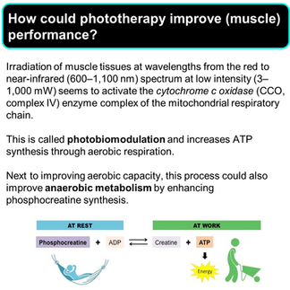 👀 Phototherapy using near-infrared light applied directly to the muscles has been shown to improve performance mostly in modalities of aerobic exercise.